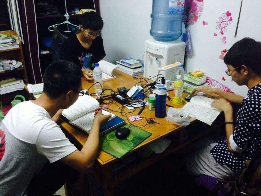 同学们在公寓内对课后的数学问题进行着讨论,气氛热烈。流露出“数学人”的坚韧与勤奋。