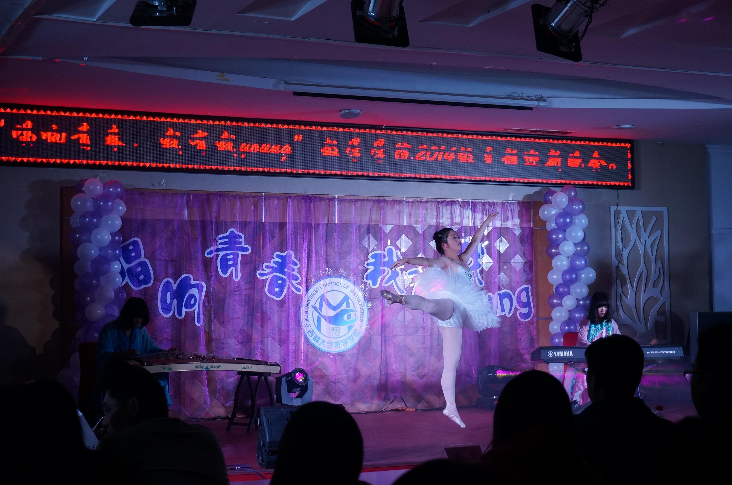 激情四射的舞蹈把晚会又一次推向高潮,广场舞配上音乐《小苹果》更是“high”翻全场,博得掌声尖叫声不断。钢琴、古筝和芭蕾演绎出的《青花瓷》别有一番风味。学生会主席马思铭深情演唱的《给你》打动了在场所有人。乐队的表演《逐梦岁月》再次让全场活跃起来。晚会在由校学生会文艺部成员演唱的《最美的太阳》的温馨的歌声中圆满结束。