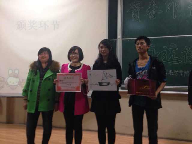 学生会宣传部的部长王硕为获奖班级颁发证书和奖品。
