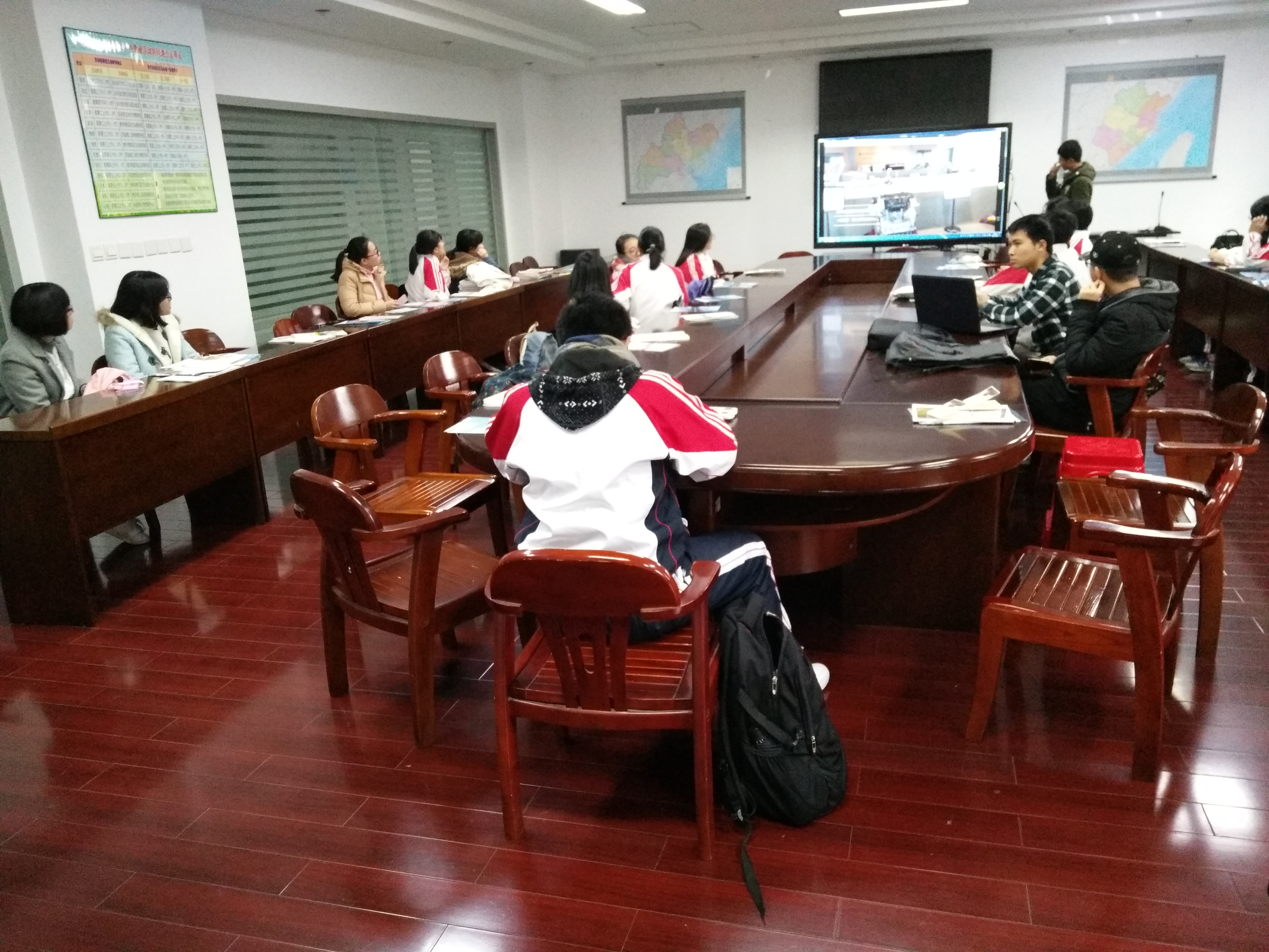 活动前,林静同学和高中校友们进行了明确分工,收集了许多有关的信息,梳理好宣讲的脉络。在校领导的支持与安排下,宣讲小组于学校办公楼会议室中针对年级前50到100的学弟学妹展开了宣讲。他们展示了宣讲ppt以及播放了av视频