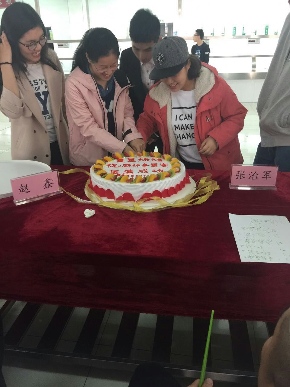 一点整,学生会文艺部的女孩们用开场舞带动了全场的热情,主持人介绍了到场嘉宾后宣布大赛开始。进入决赛的参赛选手们都早已准备充分,斗志昂扬。验看了食材以后,组织者一声令下,计时开始,厨房便成为了他们发挥才艺的舞台。整个比赛分为a、b两个小组,两组同学轮流在厨房做菜,在场外由主持人带领着做一些小游戏,整个基础园气氛空前高涨。很快菜就端上来了,色香味俱全,评委们试吃完毕后,观众们立刻充满期待的围上前来,一边听着作者的介绍一边细细品尝着,纷纷竖起大拇指夸赞。第一轮比拼结束后,参赛同学和现场观众以及工作人员们一起分吃了大蛋糕,场面一片欢腾。第二轮比拼是花摆雕刻,选手们通过水果摆盘体现自己的刀工技巧,他们利用现有的食材雕刻出栩栩如生的玫瑰花、金鱼、柳枝等图案,表现了强大的想象力和创造力,美轮美奂,给人以耳目一新的感受。每一件作品都很别出心裁,最后经过评委们认真艰难的抉择cout<<delicacy组的傣家菠萝饭被评为冠军菜品,新东方烹饪学校组的辣子鸡被评为亚军菜品,ssr组的欧气满满被评为季军菜品,颁奖和合影之后活动圆满落幕。
