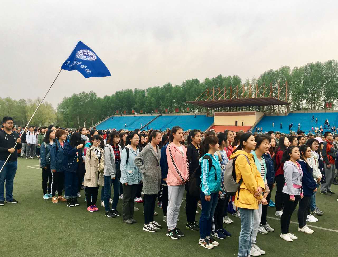 于五月四日,组织学生到体育场参加五四青年节升旗仪式.