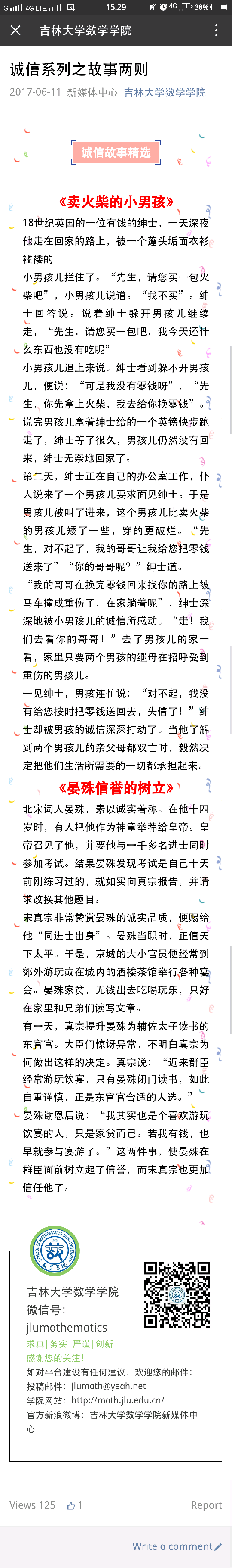 此次活动帮助学生树立了“有信用者荣,无信用者耻”的诚信是非观,全面营造了学习诚信典型、争做诚信模范的浓厚氛围,使学生能主动成为坚持诚信的自觉实践者。