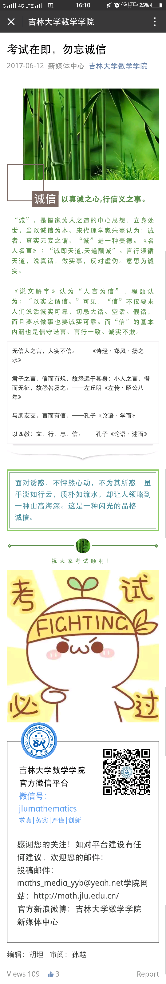 结合不同时段的诚信特征,采取对应宣传形式。充分发挥新媒体的作用,在微信平台及微博上每日推送诚信标语、小故事,增强大学生诚信意识。同时运用微信公众号,微博话题讨论,微信互动等形式,深入开展了诚信教育网络宣传活动,广泛宣讲了诚实守信事迹。