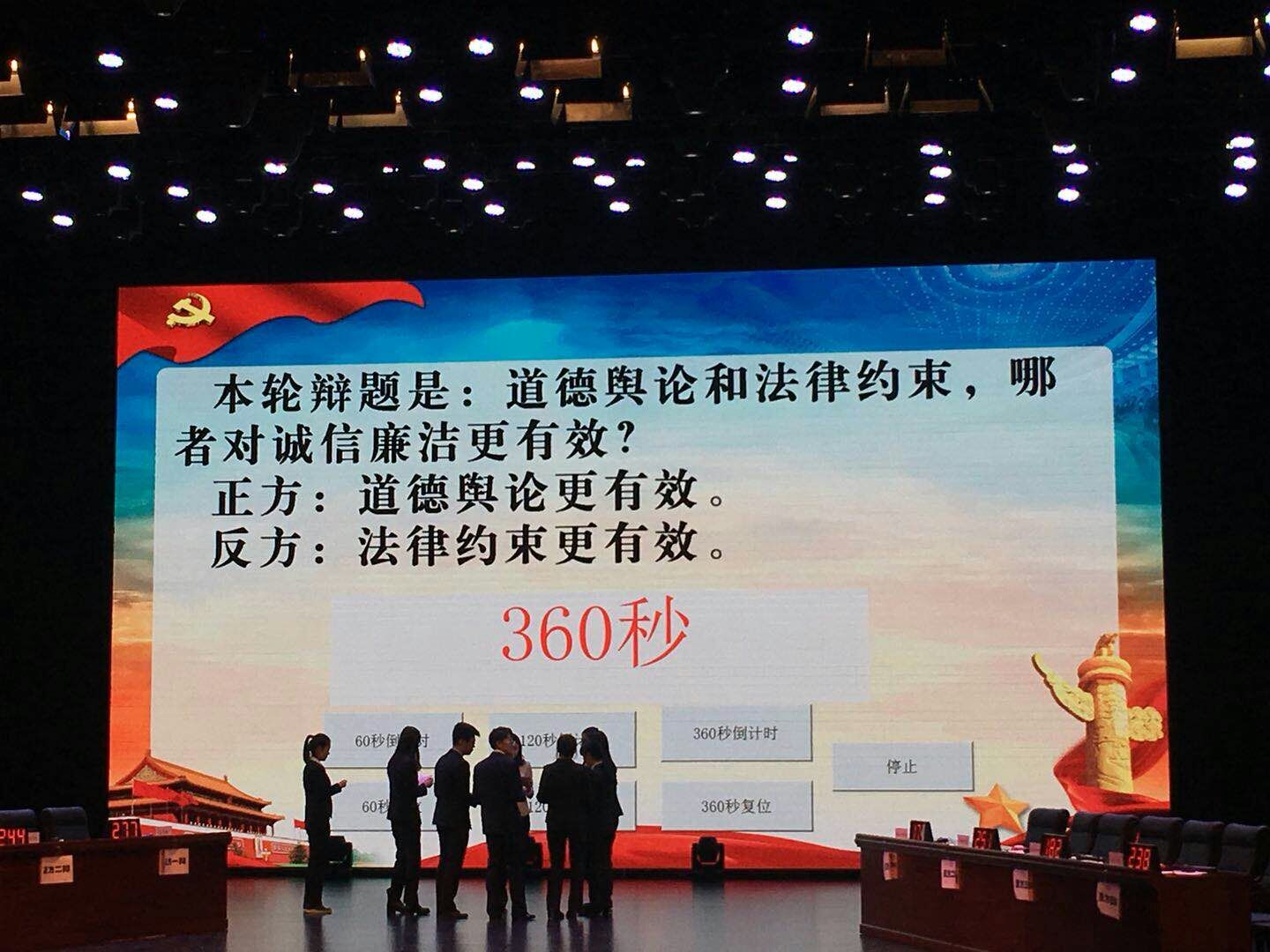 主持人阐述此次活动目的和意义后,比赛正式开始。第一轮为知识抢答环节,由30道选择题与20道判断题组成,题目以廉洁为主题、涉及中共现行廉政政策、国内外各项廉政法律条文等。比赛战况激烈,各支队伍抢答积极、表现活跃,比分交替增长。第二轮为即兴问答环节李玉涵就“作为一名学生党员,如何提高党性修养,加强学习型、服务型、创新型支部建设”进行了180秒的即兴回答,第三轮为主题辩论环节,题目为“道德舆论和法律约束,哪者对诚信廉洁更有效”。苗凯伦同学抽取反方一辩,陈述了在当前社会环境下法律约束要比道德舆论更具有时效性,更加的简洁高效。第四环节为主题猜词。40秒答题时间内,系统随机给出与廉政有关的成语、机构、罪名、影视作品,李玉涵同学描述,刘月同学猜词,两人配合默契,接连答对3题。第四轮为主题附加展示环节。秦雨萱、宋佳宁、李泉瀚同学进行了软笔书法及诗朗诵表演。五轮比赛结束后,av视频