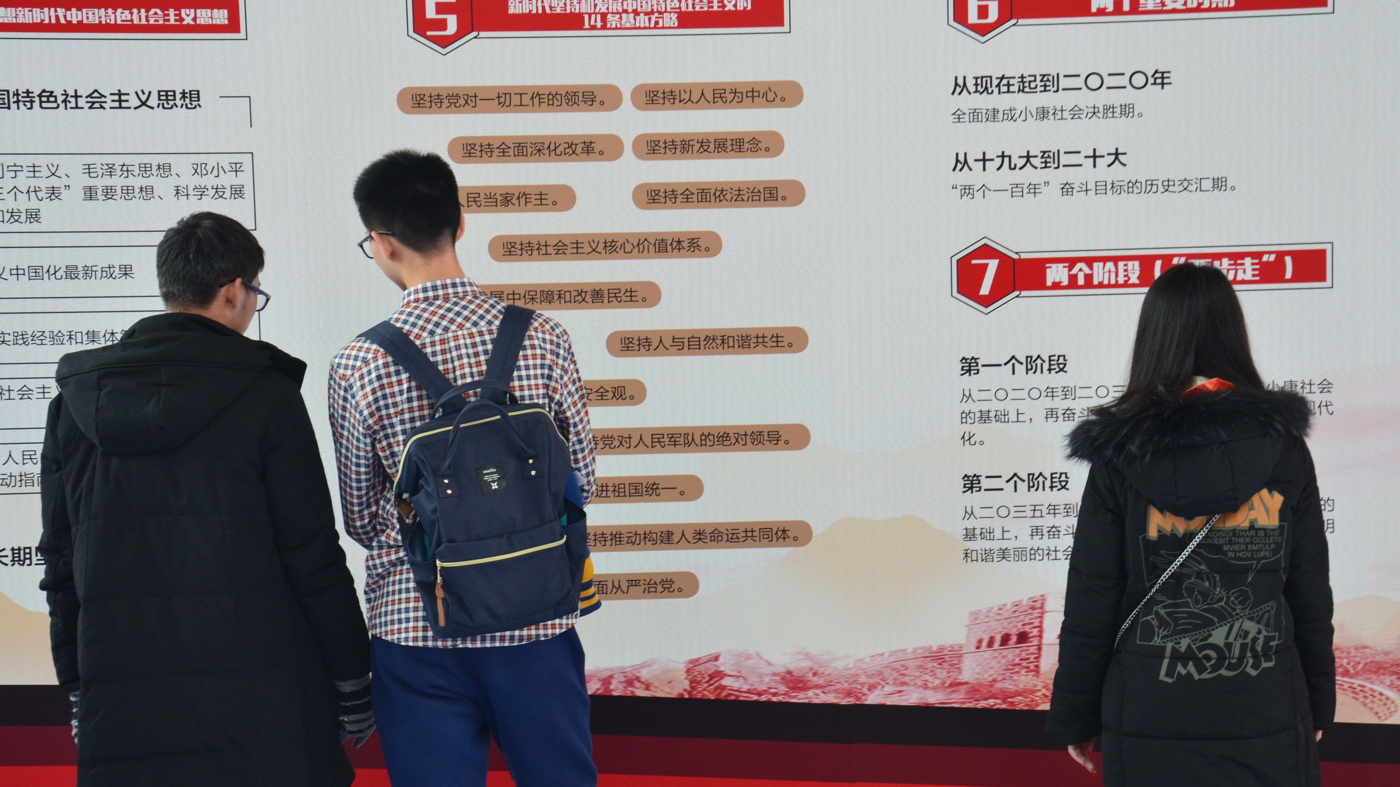 一月二十日,数应一班的同学们来到了学校里的教学楼开始进行对十九大精神的深入了解并为向群众发放传单及问卷做准备。一月二十二及二十三日,大家来到雕塑公园附近进行对人们的问卷调查。一月二十四日,大家再次齐聚并对前两日的活动进行整理总结及分析。调查显示,人们对中国近几年的发展较为自豪,对未来有较高的期望及信心。但对十九大中提出的“新时代”了解不是很深。针对这种情况,大家做出了一份传单并于二十五日再次来到雕塑公园附近发放给民众。