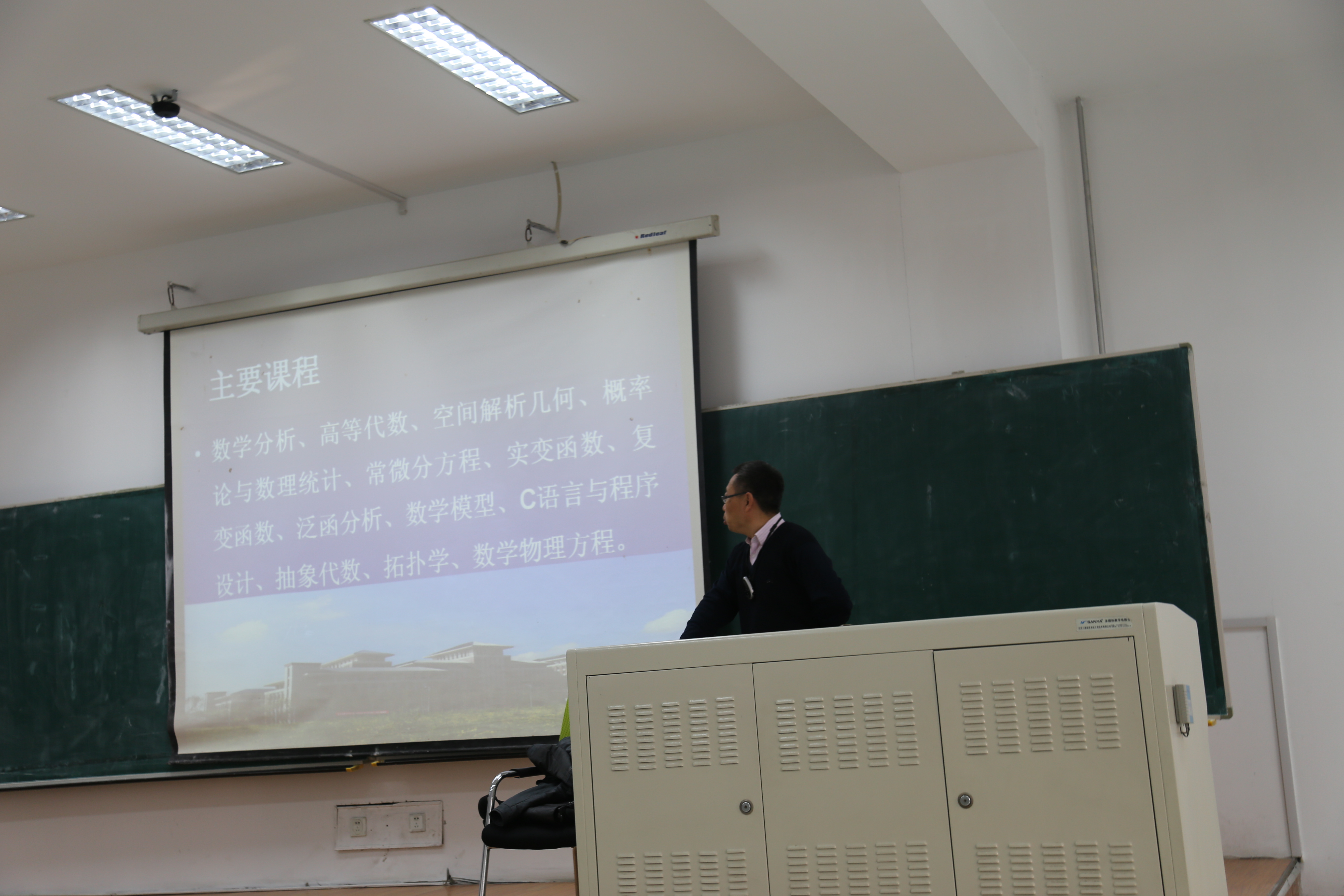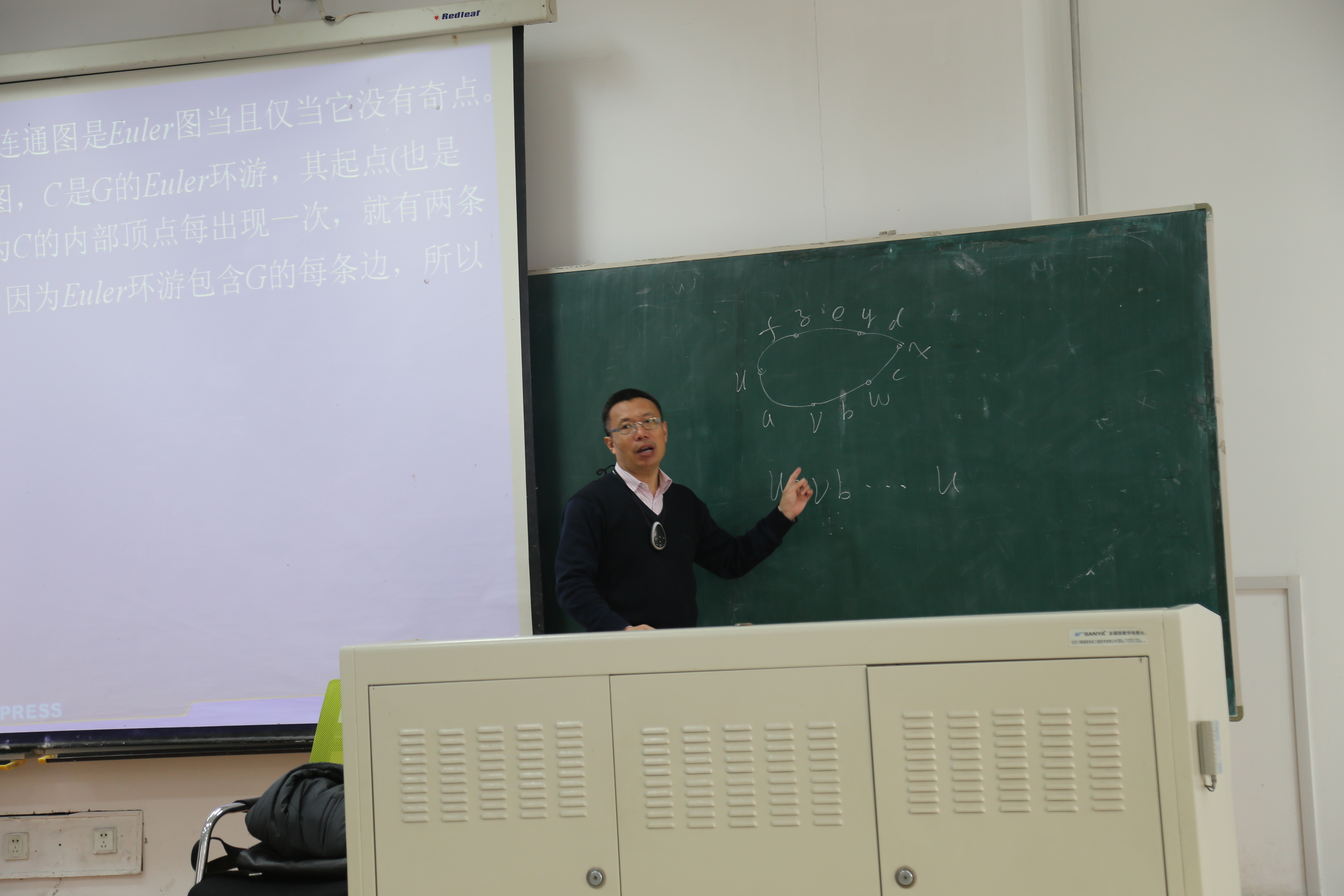 学生在本科时期要学习的全部课程。随后又详细介绍了我院计算数学的师资队伍、专业方向、研究方向。紧接着,刘老师通过几张简单的几何图形向大家引入Euler图的定义,由浅入深,又向大家介绍了Euler图的相关定理。老师通过对定理的证明,不仅介绍了一个非空连通图是Euler图的充分必要条件,还潜移默化地教授给大家定理证明的方法。在座的同学们听得津津有味,同学们根据老师在黑板上画的简易的图解以及对问题精准的剖析,渐渐加深了对Euler概念的理解,也对这个陌生的概念有了更多自己的思考。最后,老师特别为大家提供了答疑环节,以解答同学们在本次课程乃至数学学习方面的困惑。
