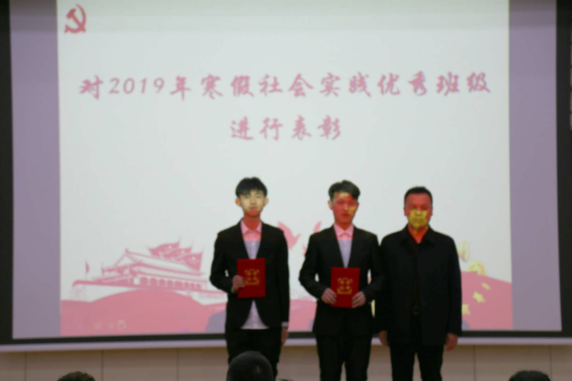 接着学院对2019年寒假社会实践班级进行了表彰,由范庆文书记、李庚老师和曹馨月老师为获奖班级颁发了证书。