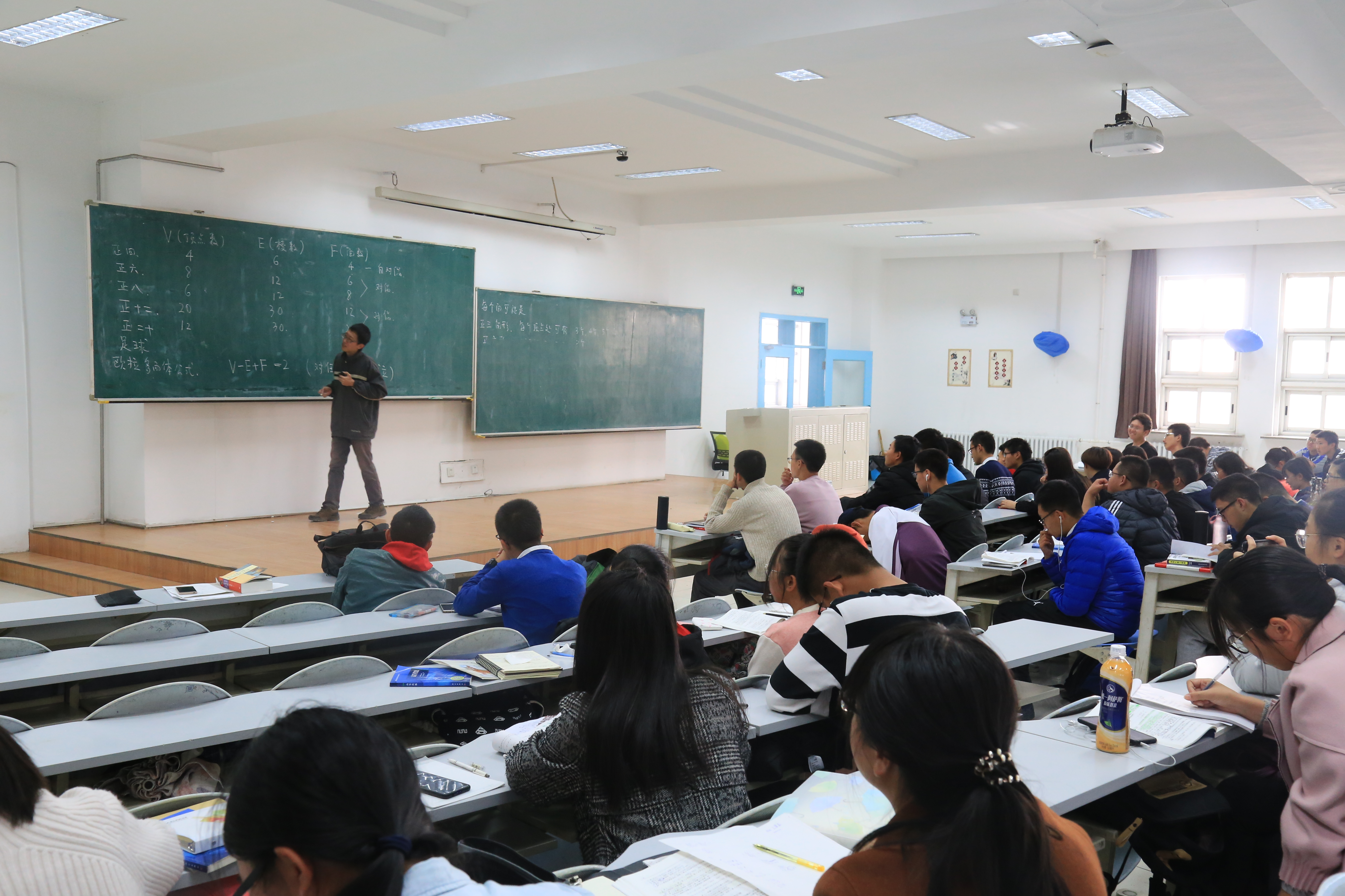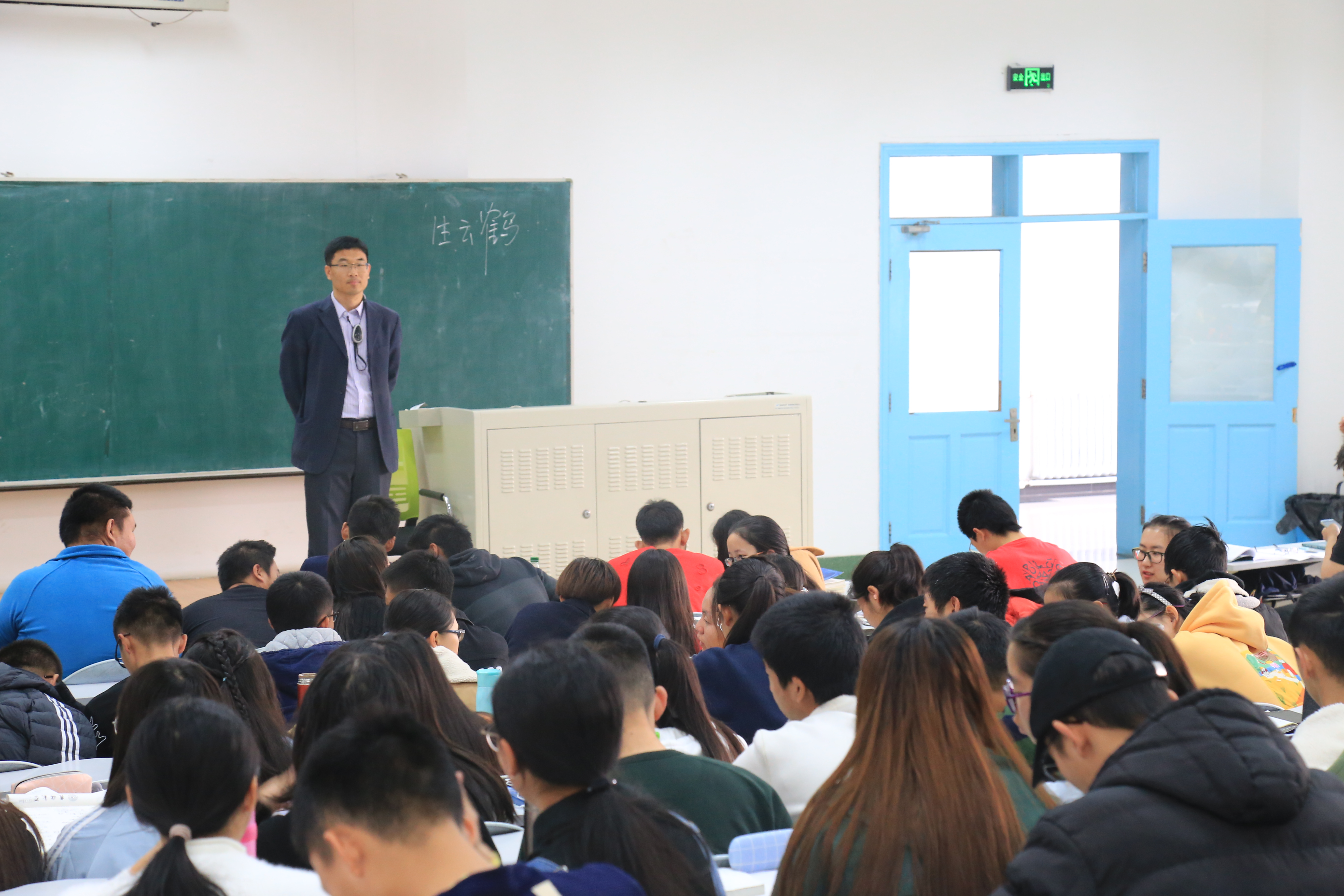 讲座的第一部分由生云鹤教授主讲。生云鹤教授以“不忘初心”为主题,鼓励同学们要坚持自己最初入学时的信念,坚持自己的志向,坚持自己对于数学的热情,不忘初心,尽心尽力地把大学之路走好。在为新生们奉上开学以来第一碗“心灵鸡汤”后,生教授从空间几何解析中的内外积知识入手,以学生刚刚了解的三维向量空间上的内外积知识为基础,引导学生理解n维向量空间、独立思考更高维数向量空间上的内积、外积定义。生教授在讲座中强调,要学好数学,就要学会理解数学,特别要学会直观地理解。生教授还倡导同学们在日常学习中积极讨论。讲座现场,同学们两两一组,在生教授的指导下对于n维向量空间中内积的定义做出激烈讨论。