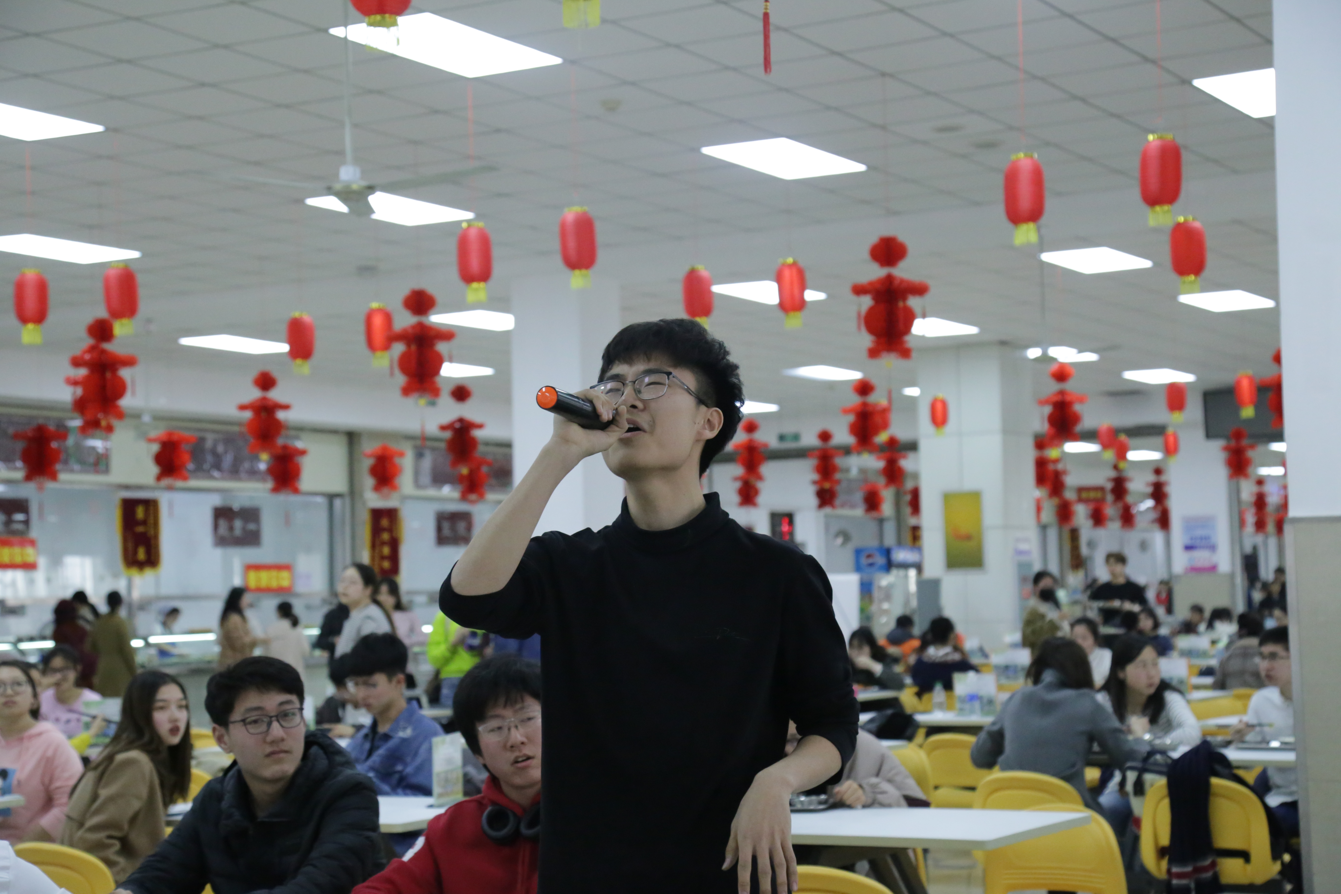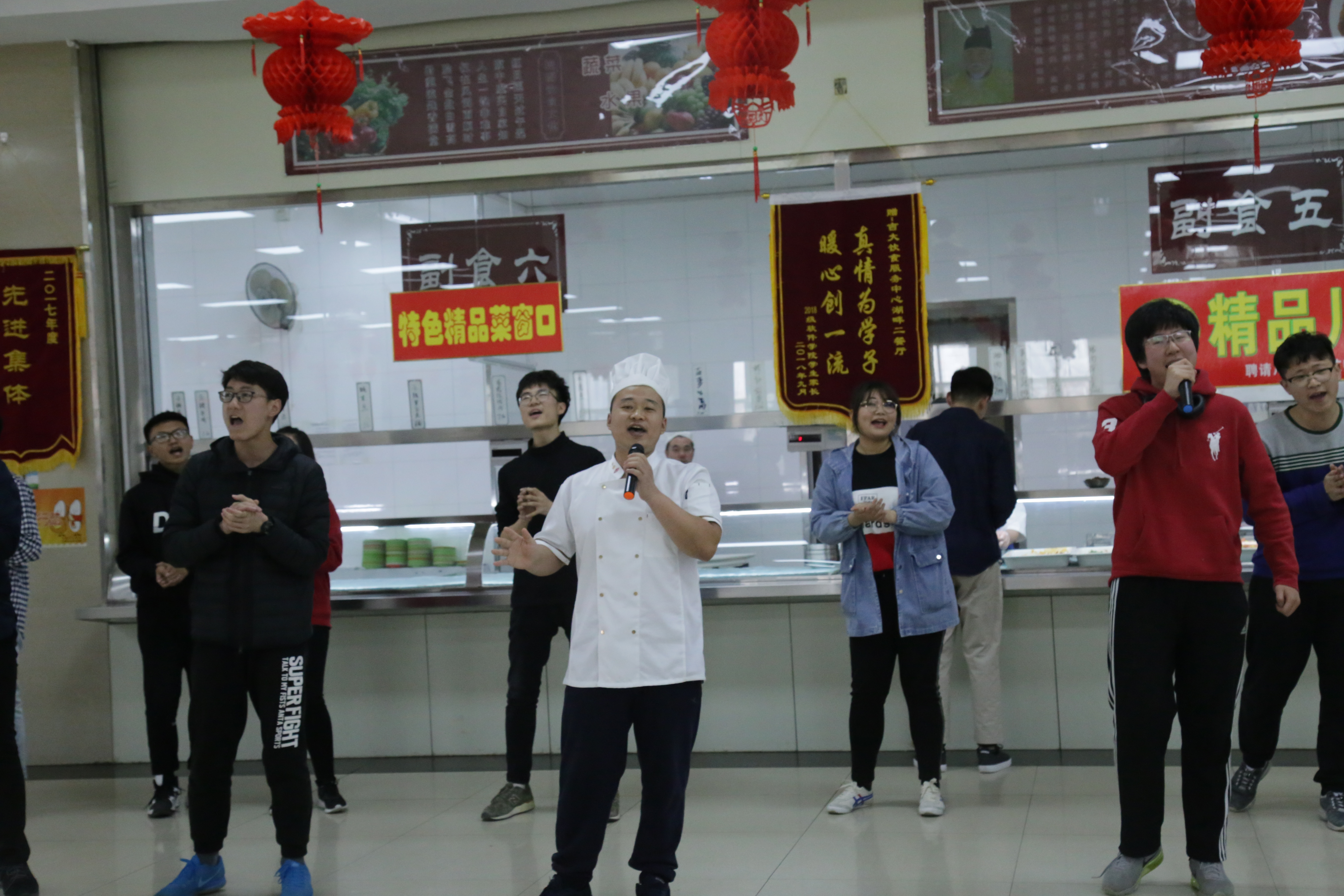 正值午餐时间,伴随着吉他声穿过人群充满整个餐厅,平淡的氛围一下子变得活跃了起来。第一首歌是由三队组合带来的《致姗姗来迟的你》,演唱者们穿梭在人群中,成为一道亮丽的风景线,同学们纷纷拿出手机记录下这令人心动的时刻。一首接着一首,表演者渐入佳境,其他同学们也投入其中,不仅随着音乐摇摆更是起身拍手叫好。同时,音乐也和着演唱者的状态达到了高潮。在演唱《王妃》时,团队邀请到了拉面哥作为嘉宾加入到此次活动当中,拉面哥不仅用自己声入人心的演唱将现场推到了热情的至高点,同时也向同学们展现了自己不仅只有面做的好吃。最后,当大家齐聚在取餐口时,他们俨然成为了整个餐厅的焦点,同学们无一不在期待着更加精彩的演出。虽然音乐停止如音乐响起般霎那,所有参演人员不舍的结束了演唱,转眼间同学们又回到了看似平常的午餐时间,但是餐厅里被燃起的气氛却不曾减少半分,从大家的声声赞叹中我们可以感受到此次活动带给大家的惊喜与欣喜。春,是一段充满生机的时光,新鲜而明媚。我们,是像春一样的青年人,充满朝气,蓬勃向上。这次一年一度的春日校园快闪活动,便是我们与春天对“朝气蓬勃”最好的诠释。