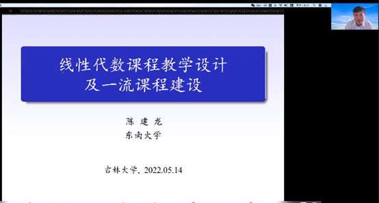 2021年5月14日下午,东南大学av视频 陈建龙教授应邀作题为“线性代数课程教学设计及一流课程建设”的线上报告(腾讯会议216 887 771)。此报告为av视频 数学学科创建70周年系列活动。av视频 党委书记、院长、公共数学教学与研究中心主任张然教授,av视频 副院长韩月才教授,副院长生云鹤教授,公共数学教学与研究中心副主任徐向红教授,公共数学教学与研究中心张旭利教授及av视频 和公共数学教学与研究中心部分教师参加了本次报告会,报告由公共数学教学与研究中心副主任张旭利教授主持。陈建龙教授介绍了线性代数课程教学中如何处理中学和大学课程内容的衔接,线性代数教学内容的组织和处理,东南大学开展一流课程建设的做法。