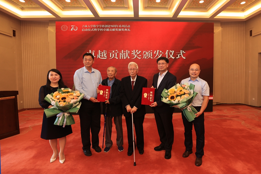 授予两位先生“数学学科卓越贡献奖”。颁奖仪式上,张希、周羿为两位先生颁奖,张然介绍了两位先生为吉大数学学科教学科研工作做出的突出贡献,对我国高等教育与数学研究发挥的积极影响。