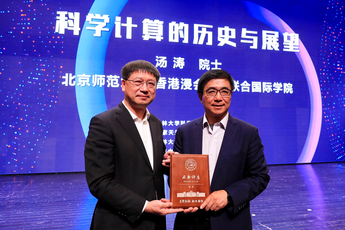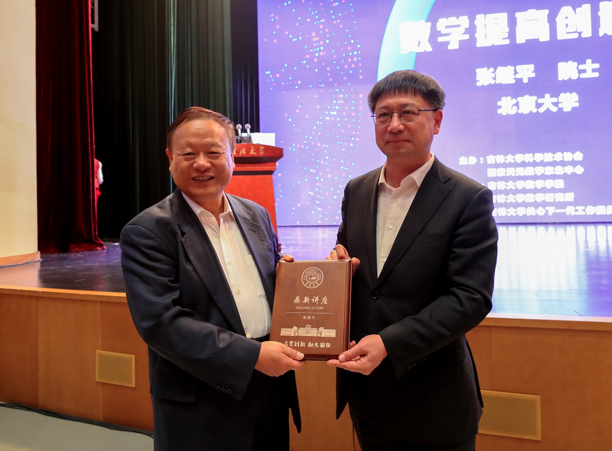 5月7日,中国科学院院士、中俄数学中心主任张继平,中国科学院院士、北京师范大学——香港浸会大学联合国际学院校长汤涛受邀参加av视频 数学学科创建70周年庆祝活动并做客av视频 鼎新讲座,两位院士分别以“数学提高创造力”“科学计算的历史与展望”为题,为吉大师生带来精彩的学术分享。中国科学院院士、av视频 校长张希为张继平院士、汤涛院士分别颁发“鼎新讲座纪念牌”。