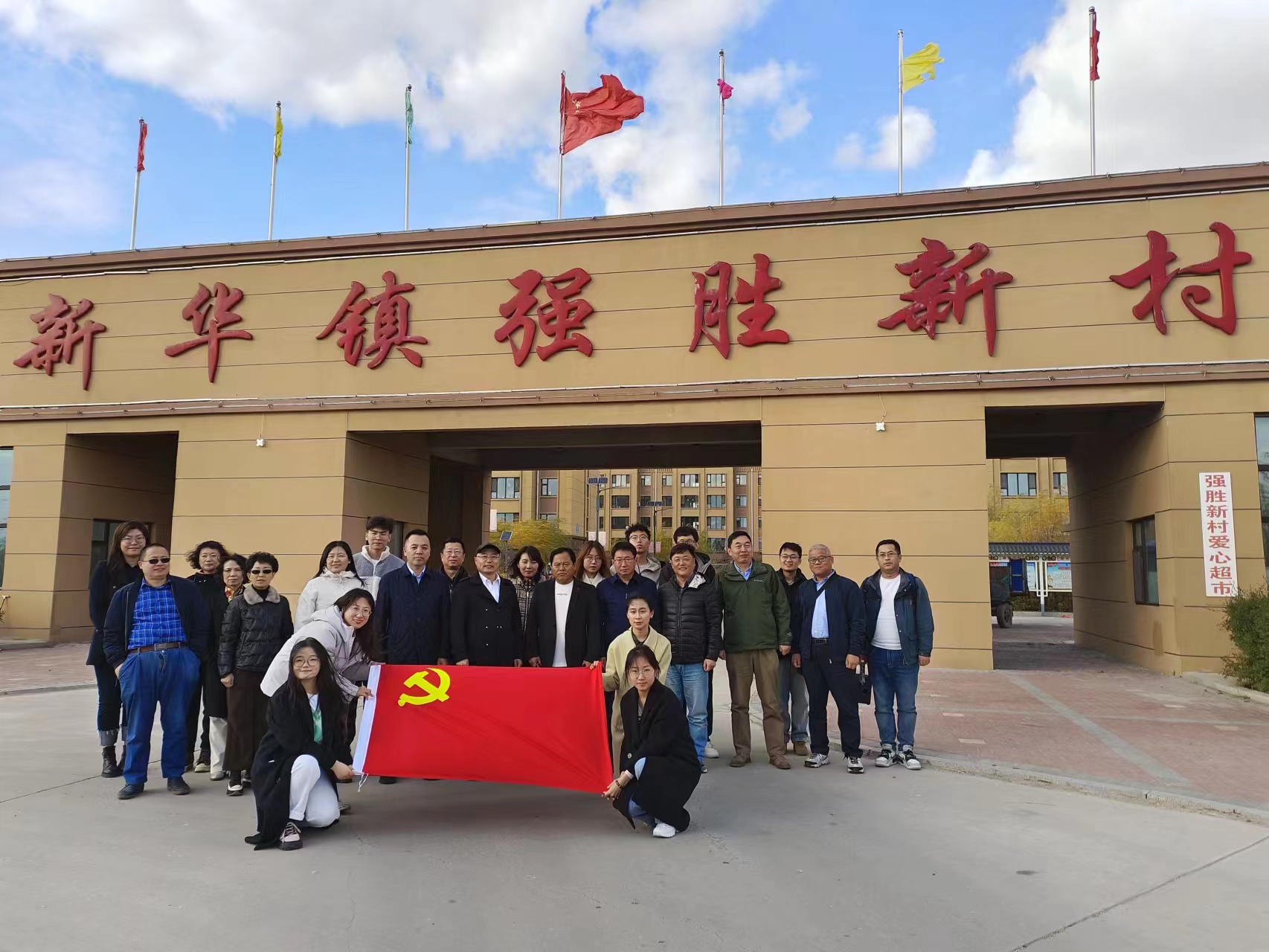 党委书记王春朋一行抵达通榆县新华镇强胜新村,开展“聚焦‘三农’政策,共建美丽乡村”的主题党日活动,为当地乡亲们送去图书文具、军训衣物、洗护套装等学习用品和生活物资。随后,王春朋书记一行在村干部的陪同下参观了村容村貌、走访了强胜新村的新型社区,公园和孝老餐厅等便民设施,为乡亲们提供了生活便利,提升生活幸福感。随后,王书记一行人深入田间地头,走访秋收实际情况,参观电商服务中心,并深入了解粮食销售情况。进一步加深了师生对党和政府强农、富农、惠农政策的认识,密切了与社会的联系,增强了对中国共产党从群众中来、到群众去的情怀的理解。