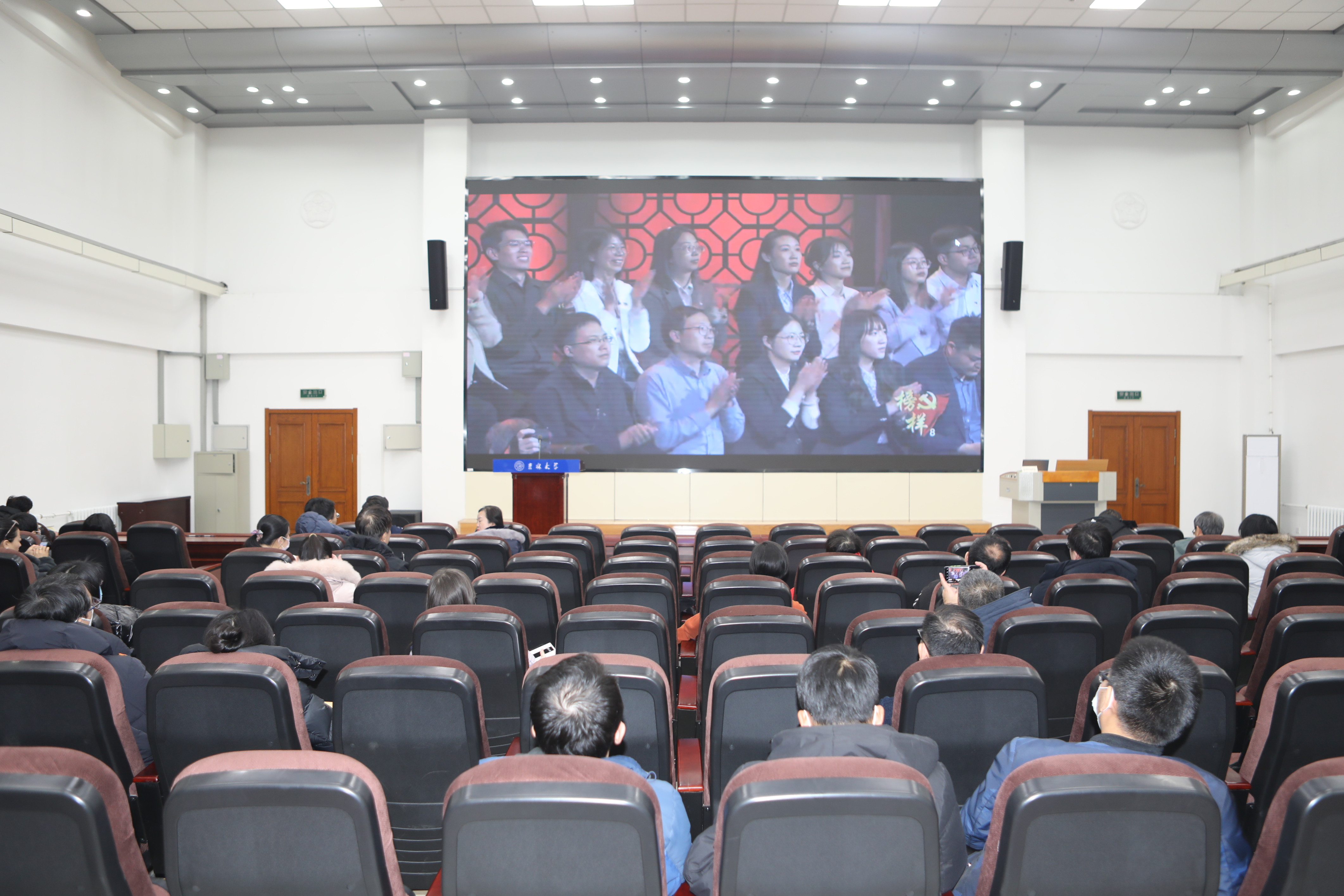 于2023年12月22日中午在数学楼二楼报告厅组织收看《榜样8》专题节目的回放,学院领导班子成员、全体教工党员以及部分教师代表参加收看。