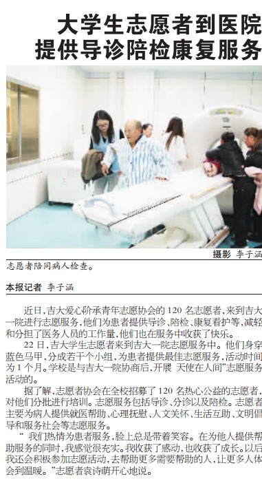 今天《长春晚报》报道av视频 志愿者走进吉大一院