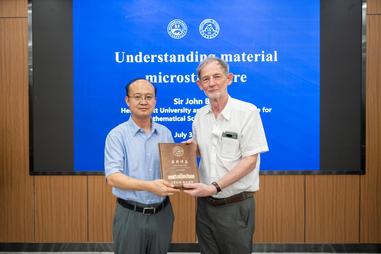 On July 31, 2024, Sir John Ball, Fellow of the Royal Society, Academician of the European Academy of Sciences, Fellow of the American Mathematical Society, Fellow of the Royal Society of Edinburgh, Foreign Member of the French Academy of Sciences, and Foreign Member of the Norwegian Academy of Science, delivered a lecture at Jilin University’s Dingxin Lecture Series. Titled