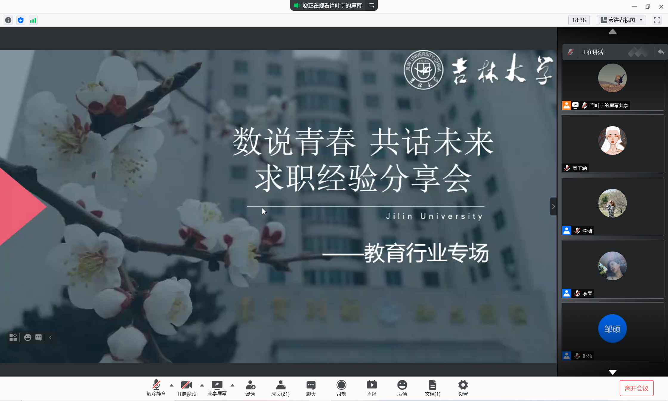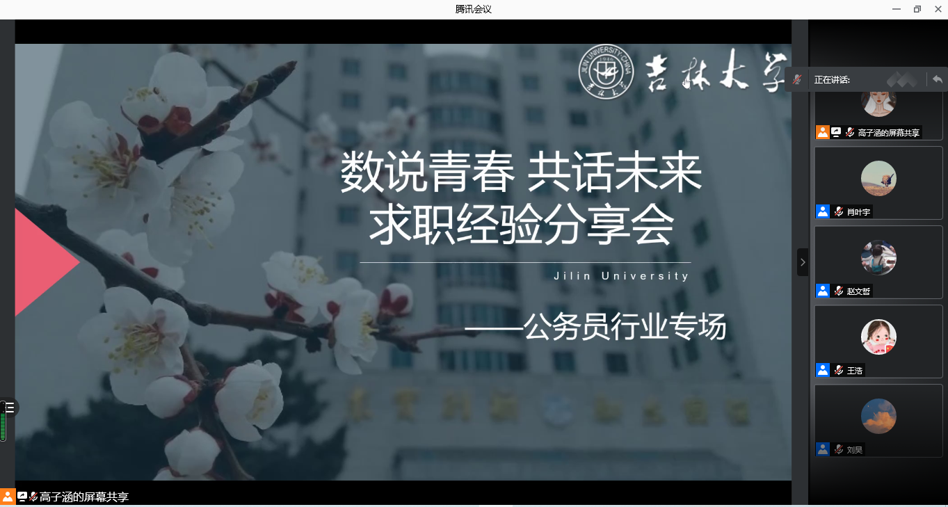 研究生就业指导部于2021年5月21日-5月30日通过线上会议的形式成功举办了“数说青春 共话未来”——求职经验分享会。此次活动共分为四个专场:教育、泛金融、科技公司和公务员专场。我们有幸邀请到李雯、林春阳、邹硕、马懿航、盖冠名、王强、赵瑞莹、李子涵、丘德煜、徐旭阳、和佳星、李佳桐、赵文哲、刘昊以及王浩等15位学长学姐来分享他们的求职经历。