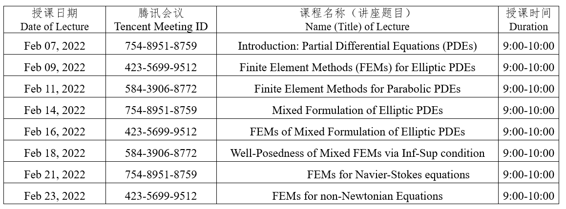 讲座题目:Numerical Methods for Partial Differential Equations