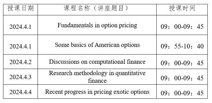讲座题目:Some fundamentals of financial mathematics and recent research progress in American option pricing under regime switching models