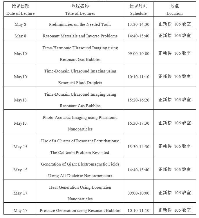 课程题目:Mathematics of Imaging Modalities Using Resonant Contrast Agents