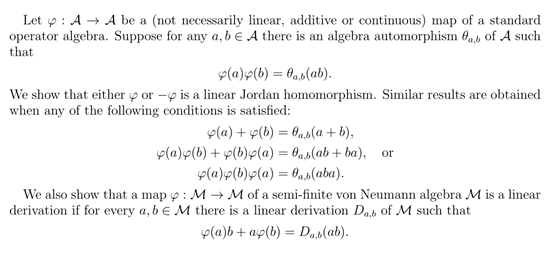 报告题目:Operational 2-local automorphisms/derivations