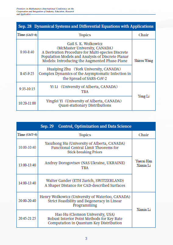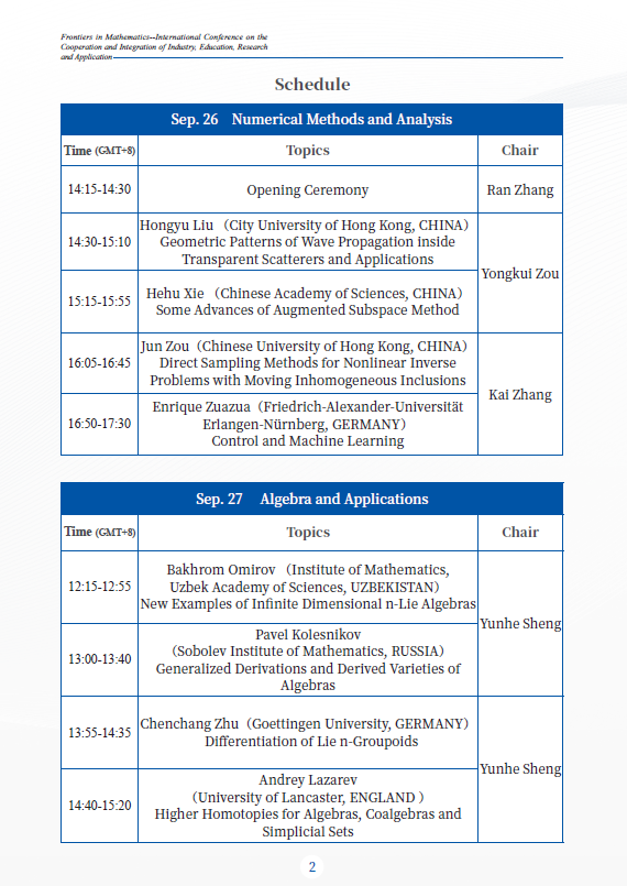 The conference in this year focuses on the following four topics:Numerical Methods and Analysis, Algebra and Applications, Dynamical Systems and Differential Equations with Applications, Control,Optimization and Data Science. Welcome to take part in the conference,and exchange academic ideas.