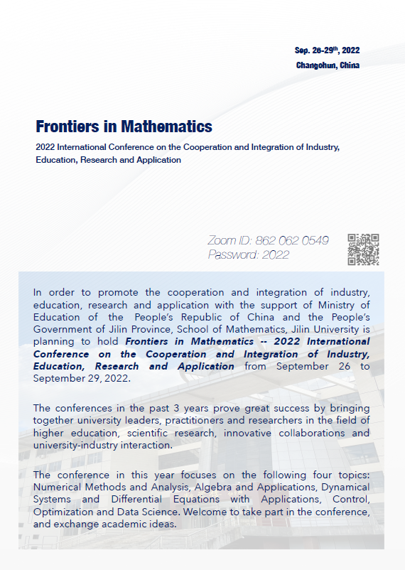 In order to promote the cooperation and integration of industry,education, research and application with the support of Ministry of Education of the People’s Republic of China and the People’s Government of Jilin Province, School of Mathematics, Jilin University is planning to hold Frontiers in Mathematics -- 2022 International Conference on the Cooperation and Integration of Industry,Education, Research and Application from September 26 to September 29, 2022.