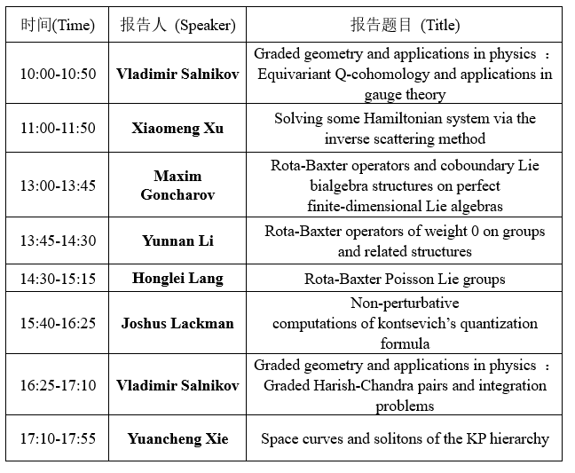 泊松几何起源于分析力学,与许多领域密切相关;罗巴代数在经典Yang-Baxter方程、重整化等领域有着重要应用。为了及时了解泊松几何与罗巴代数的前沿进展,av视频 将于2023年11月29日-12月2日举办泊松几何与罗巴代数研讨会,研讨泊松几何与罗巴代数的最新进展,以便更好的开展科学研究。