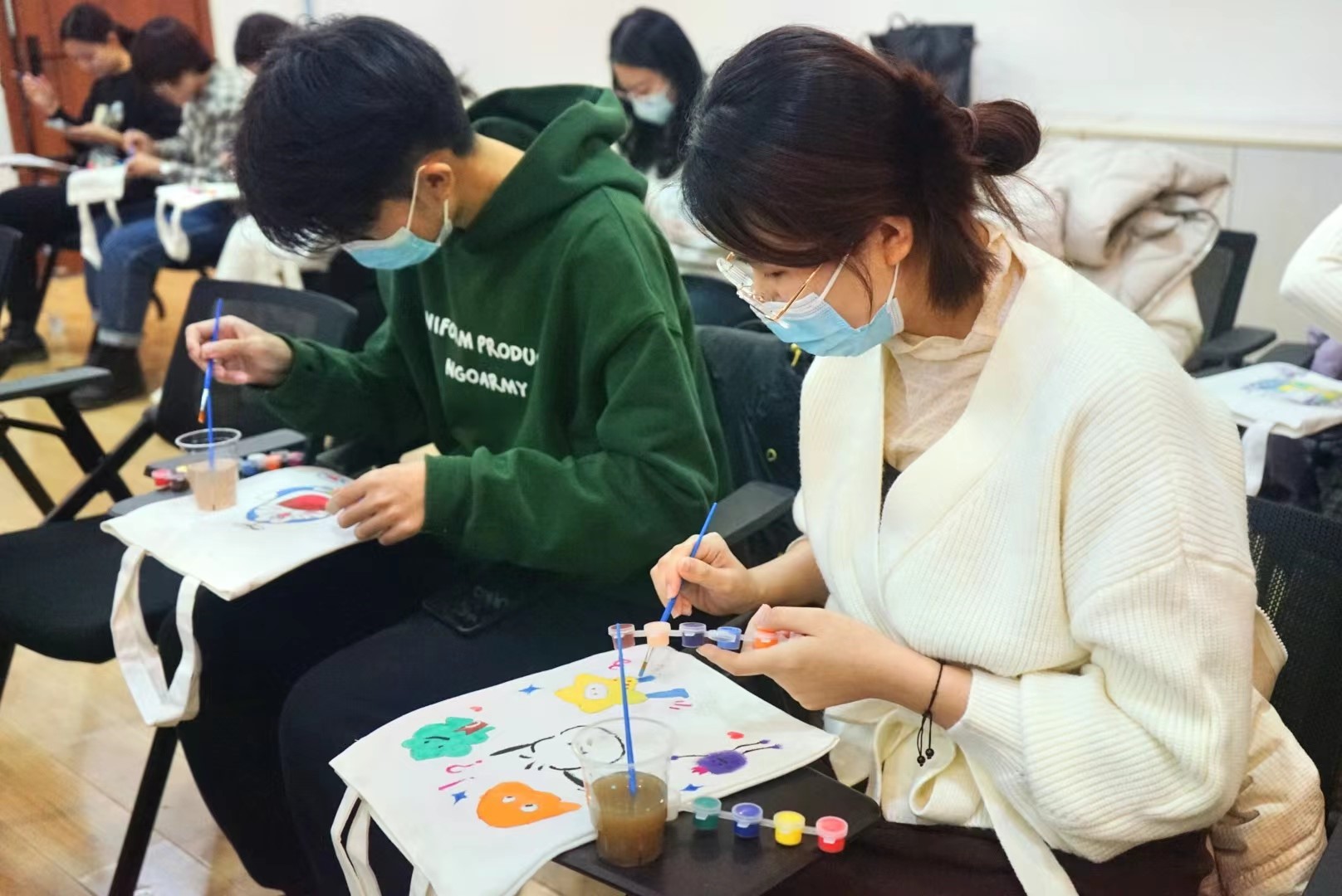研究生会心理健康部联合文学院心理健康部,成功举办了“以画之名 诉我之心叙”为主题的帆布包涂鸦活动。