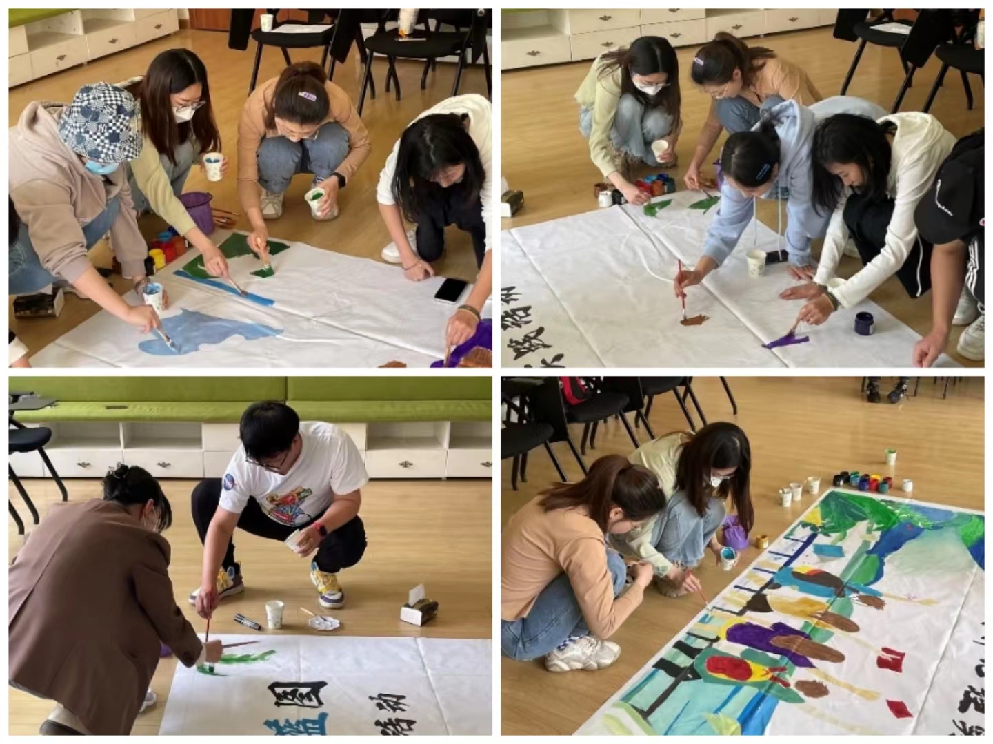 近日联合文学院暨新闻与传播学院举行了巨幅画创作美育暨心理实践活动,为av视频