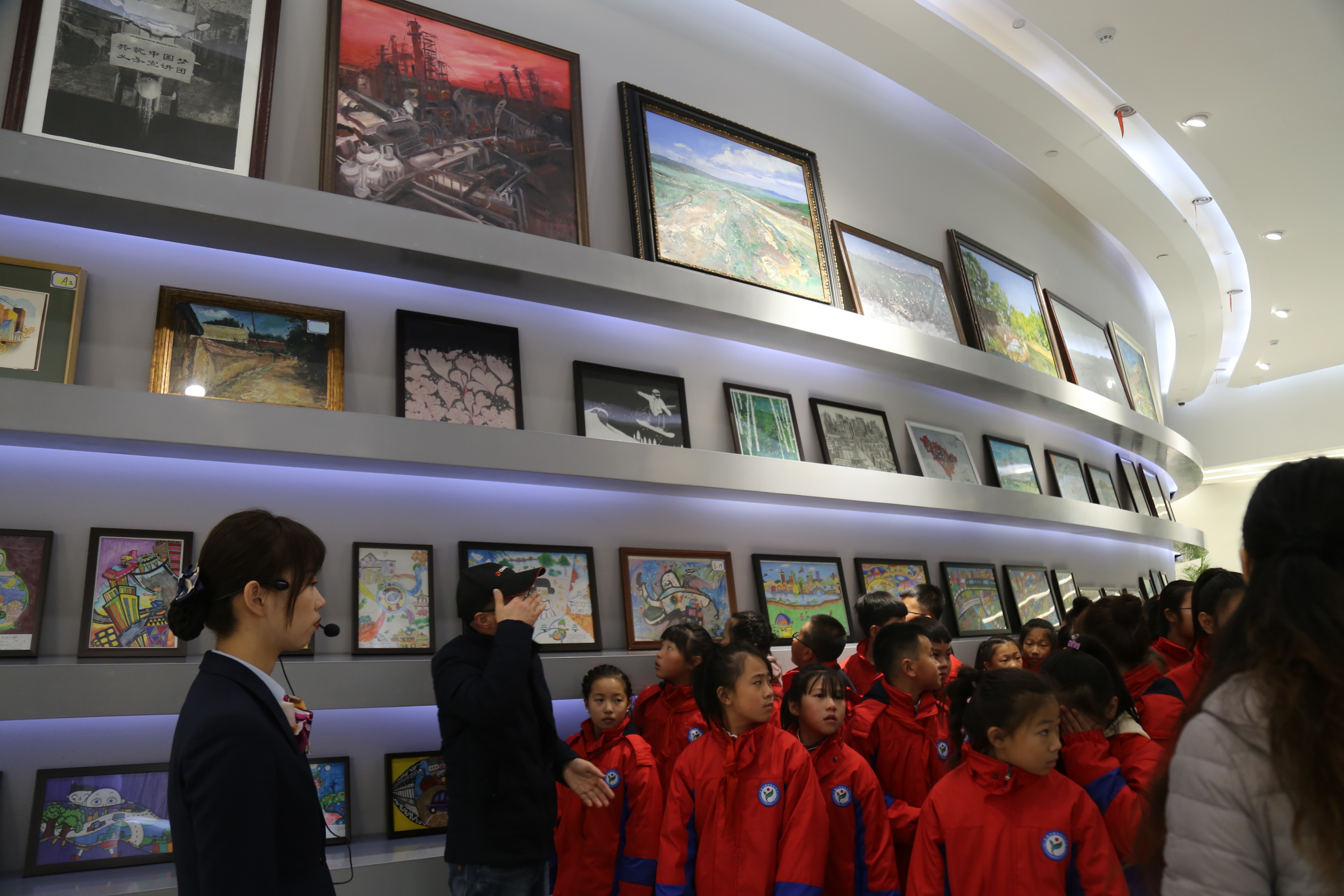 在讲解员的带领下,我们先来到了儿童绘画展区,这里没有高深的艺术哲理,只有童年的天真幻想。孩子们被各种新奇的画作所吸引,目不转睛。紧接着,我们来到了未来城市展区,运载无人机、智能机器人、未来城市等开拓眼界的展品让孩子们大呼科技的先进,看着满眼好奇心的他们,老师们也是倍感欣慰,衷心希望他们能与时代接轨,做时代的继承人。