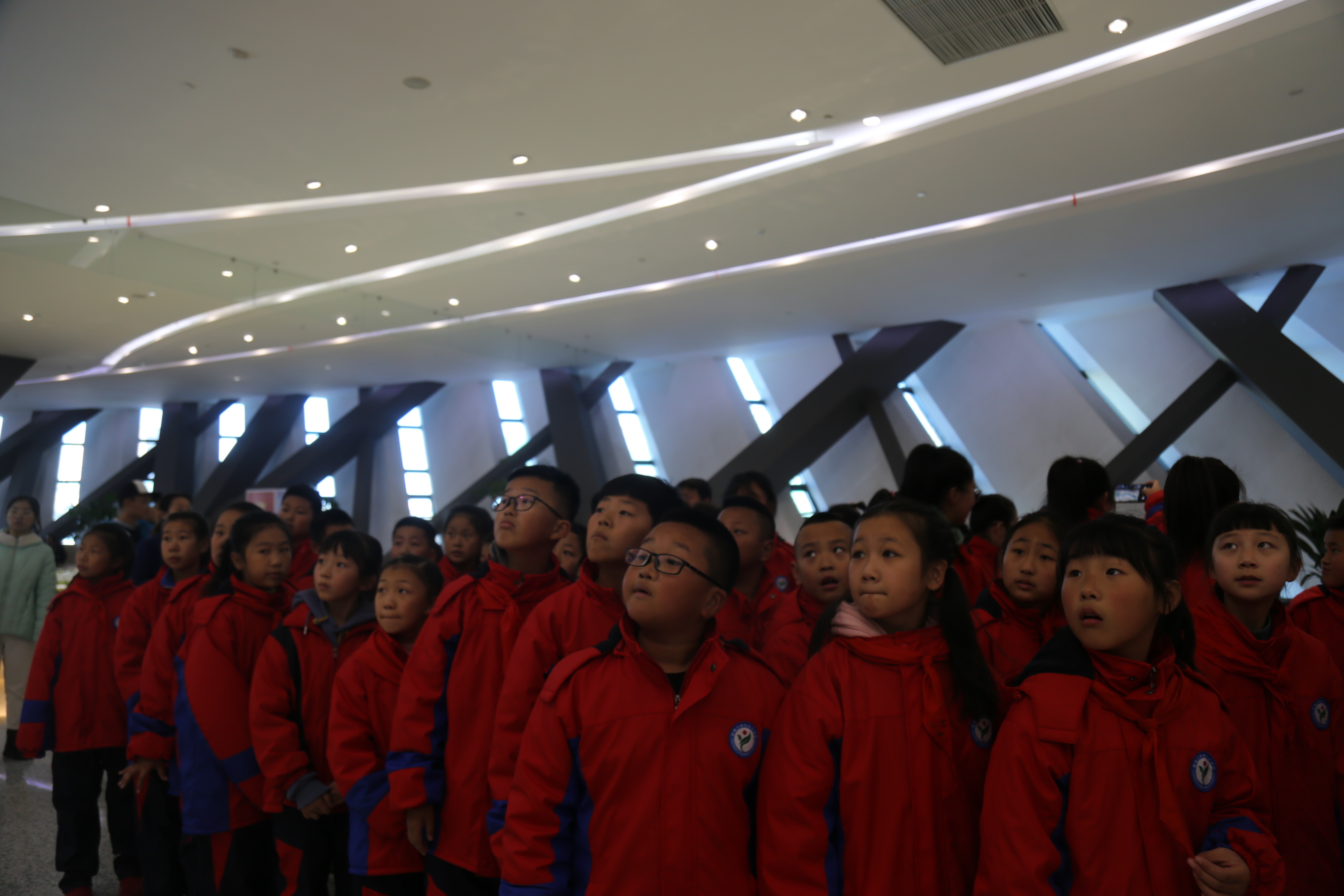 上午10:10,早早等候的我们在规划馆门口终于看到了期盼已久的两辆吉大校车以及车上那一双双亮晶晶的小眼睛,46名小朋友在校方老师的陪同下与我们胜利会师。怀着激动的喜悦心情,大家在规划展览馆门口留下第一张合照,在排好队后小朋友们开始了他们的规划馆之旅。
