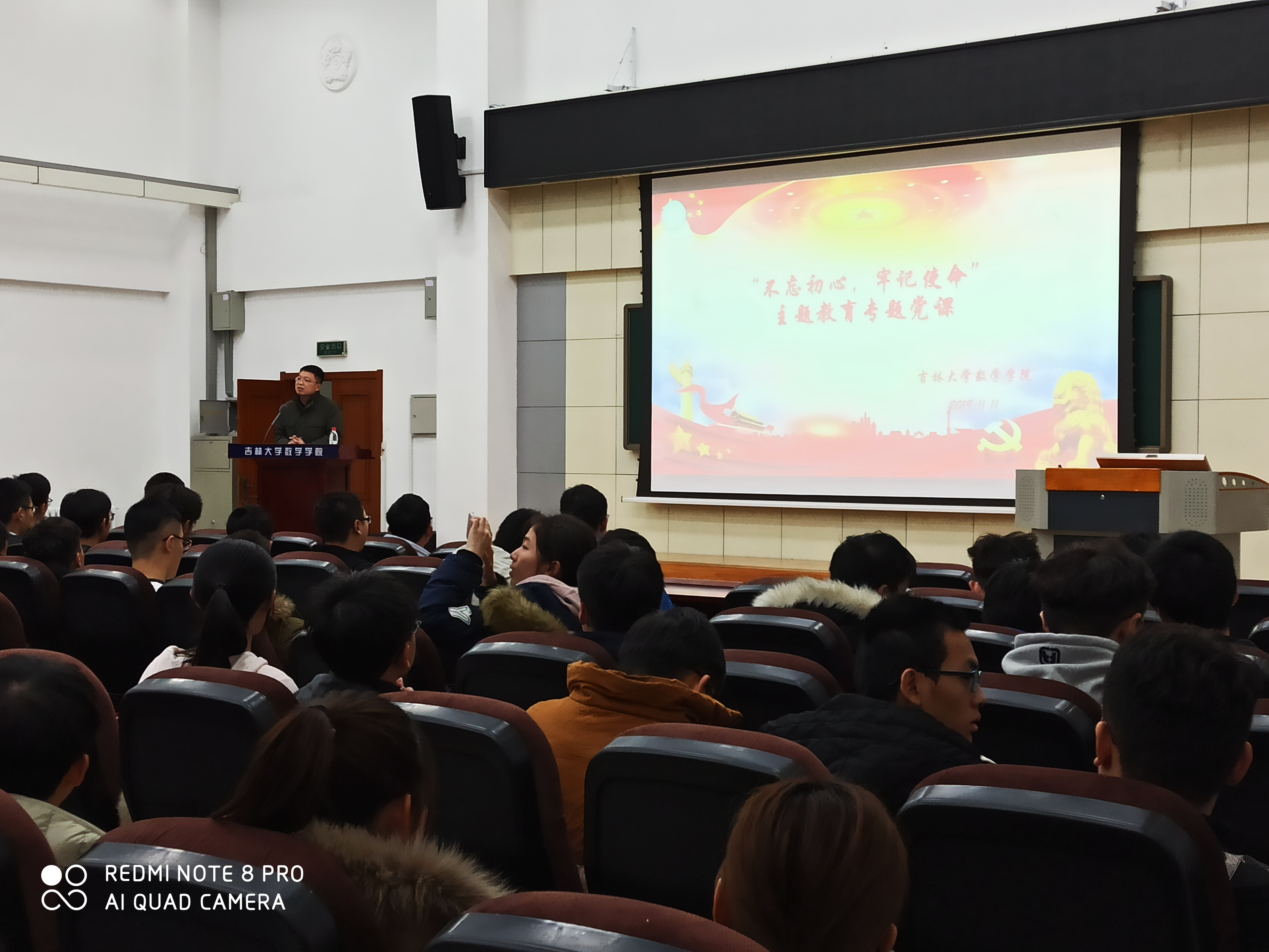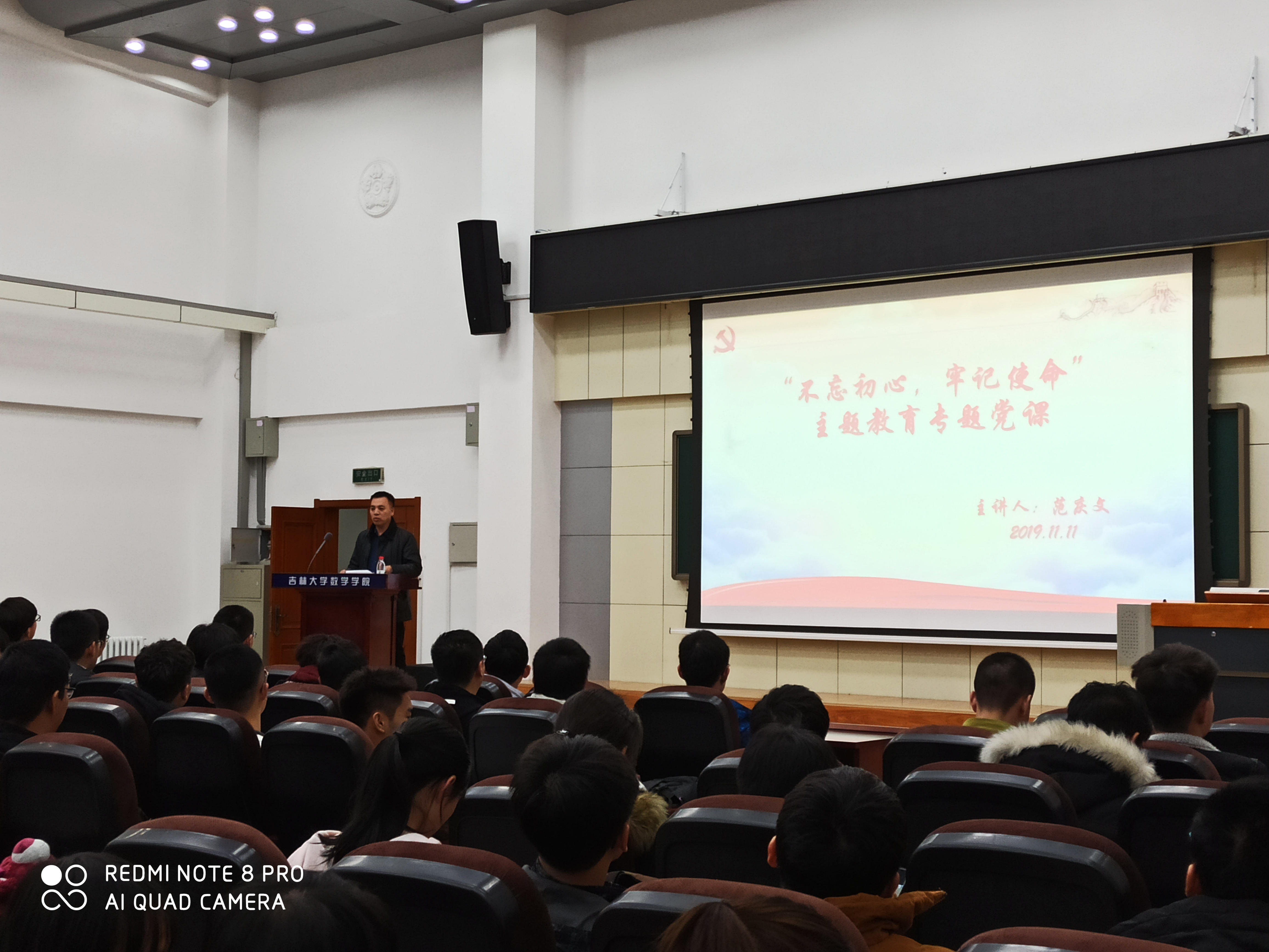 副院长陈续升老师、党委副书记范庆文老师于2019年11月11日下午在数学楼二楼报告厅组织2017级同学开展“不忘初心,牢记使命”主题党课。此次党课旨在让同学们更加深入地学习和理解习近平总书记在中华人民共和国成立七十周年大会上的讲话,感受祖国七十年沧桑巨变,坚定同学们努力奋斗的决心。
