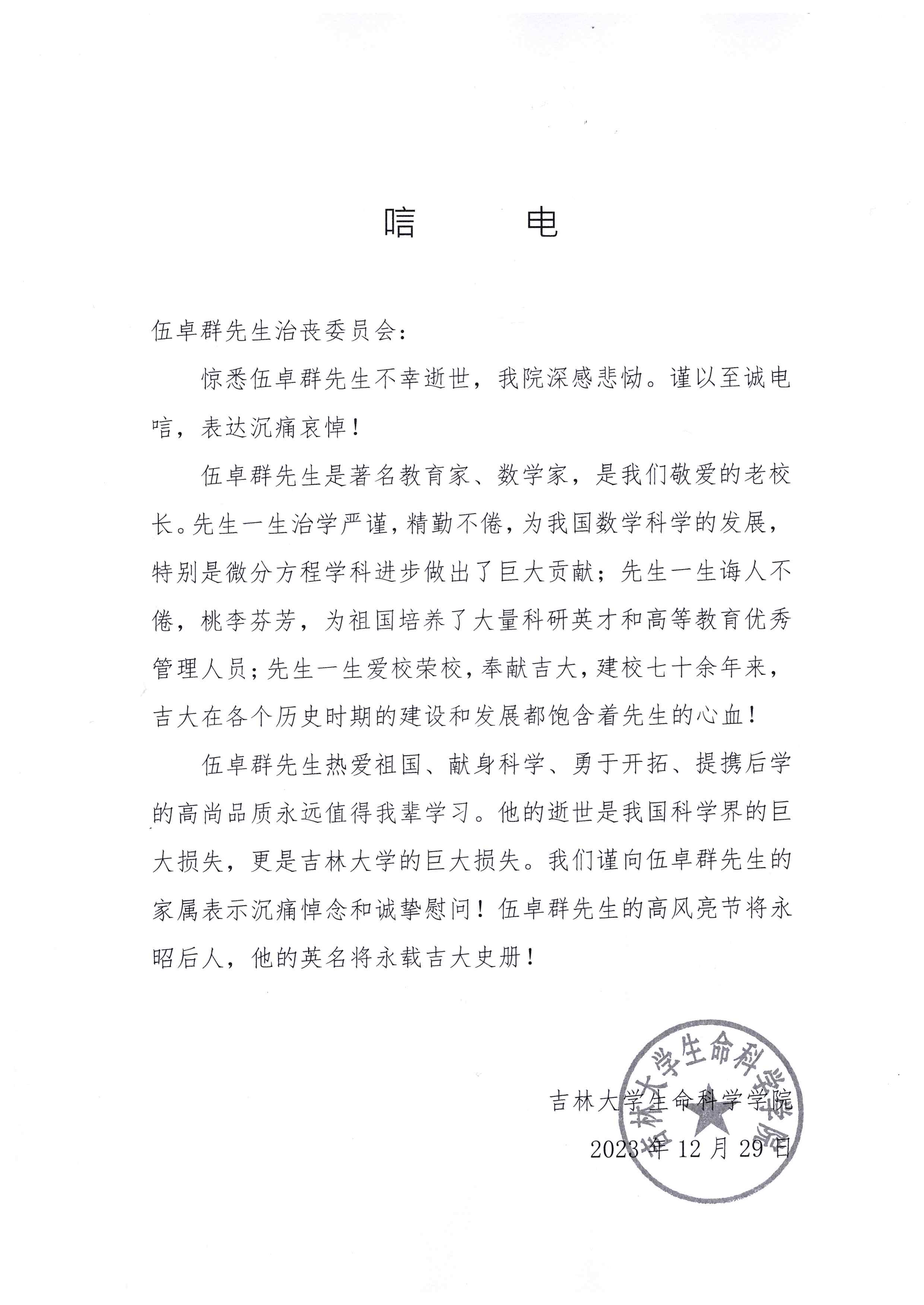 北京理工大学唁电